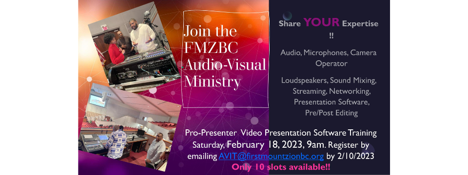 Register by February 10, 2023 at atit@firstmountzionbc.org